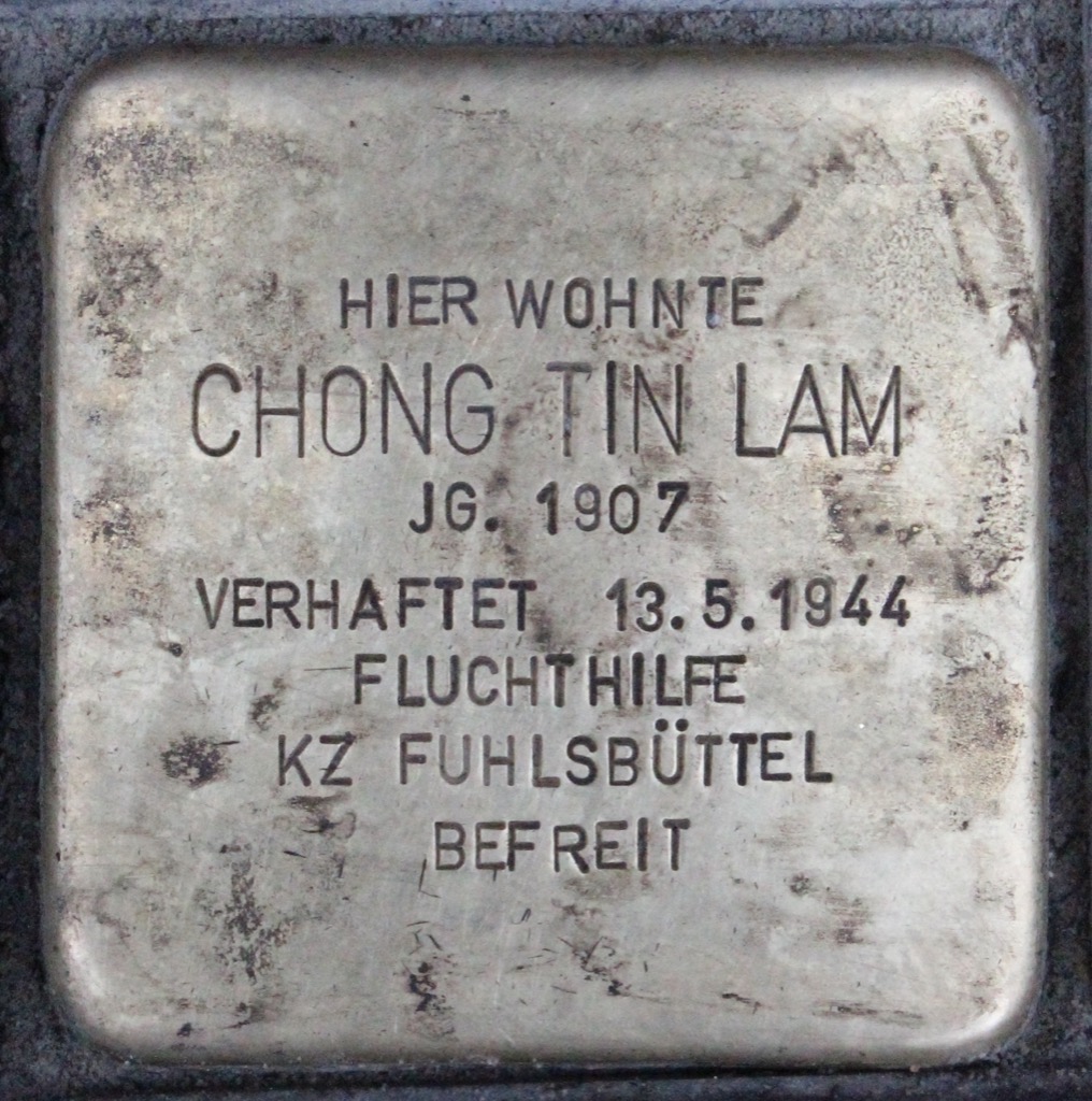 Stolperstein für Chong Tin Lam, 2019. Foto (Ausschnitt): © Hinnerk11, Wikimedia Commons, lizensiert unter: Creative Commons Attribution-Share Alike 4.0 International