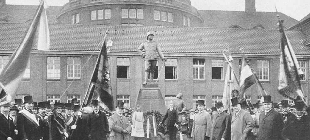 Einweihung des Wissmanndenkmals vor dem Vorlesungsgebäude / ehem. Kolonialinstituts in der Hansestadt Hamburg, 1922. Foto © Zache, Hans: Das deutsche Kolonialbuch, Leipzig 1925.
